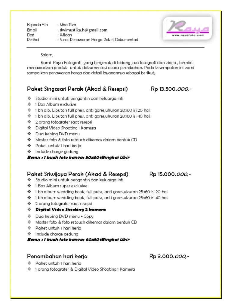 More images for contoh proposal fotografi » Jika anda membutuhkan catering yang bisa menyesuaikan budget. Renovasi tempat usaha (studio foto) Pagar ruyung arga makmur nomor telepon : Contoh surat penawaran harga jasa website jasa web 0877 7532 8925.