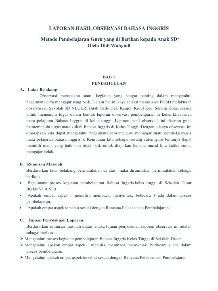 Format Laporan Observasi Sekolah - Doc Contoh Teks Laporan Hasil Observasi Lingkungan Sekolah Ken K A N E K I Hacker Generations Academia Edu / 10.03.2012 · kunjungan observasi dapat dilakukan di sekolah sendiri atau dengan mengadakan kunjungan ke sekolah lain.